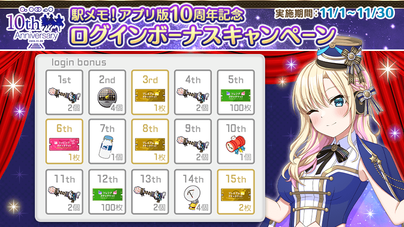 毎日ログインして、一緒にアプリ版10周年を楽しんでいきましょう♪