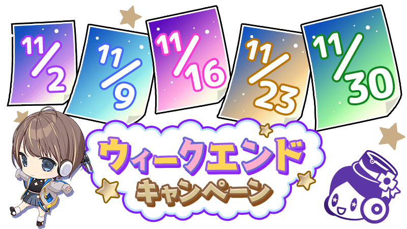 11月の土曜日と日曜日はウィークエンドキャンペーンがパワーアップ!
