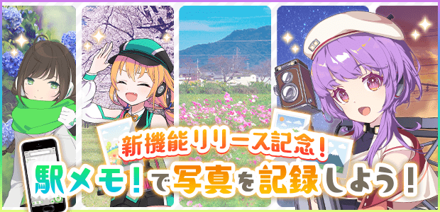 新機能として、駅メモ!上に写真を記録できるようになりました! これを記念して、特別なイベントが開催です! 新機能を使ったミッションをクリアして、豪華な報酬をゲットしてくださいね♪ 各ミッションや獲得できるアイテムの詳細は、ミッションタブよりご確認ください!