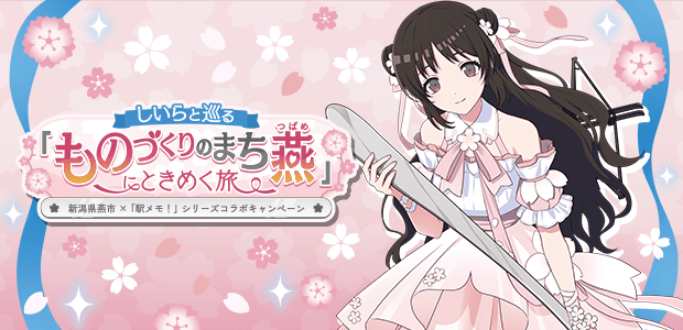 新潟県燕市の対象駅とスポットを対象としたデジタル版スタンプラリーを開催します♪ 対象駅にチェックインすることでゲーム内アイテムを獲得できるほか、全てのミッションをクリアすると、「しいら」の限定コラボフィルム 「桜とスプーンのしいら」もGETできますよ♪